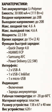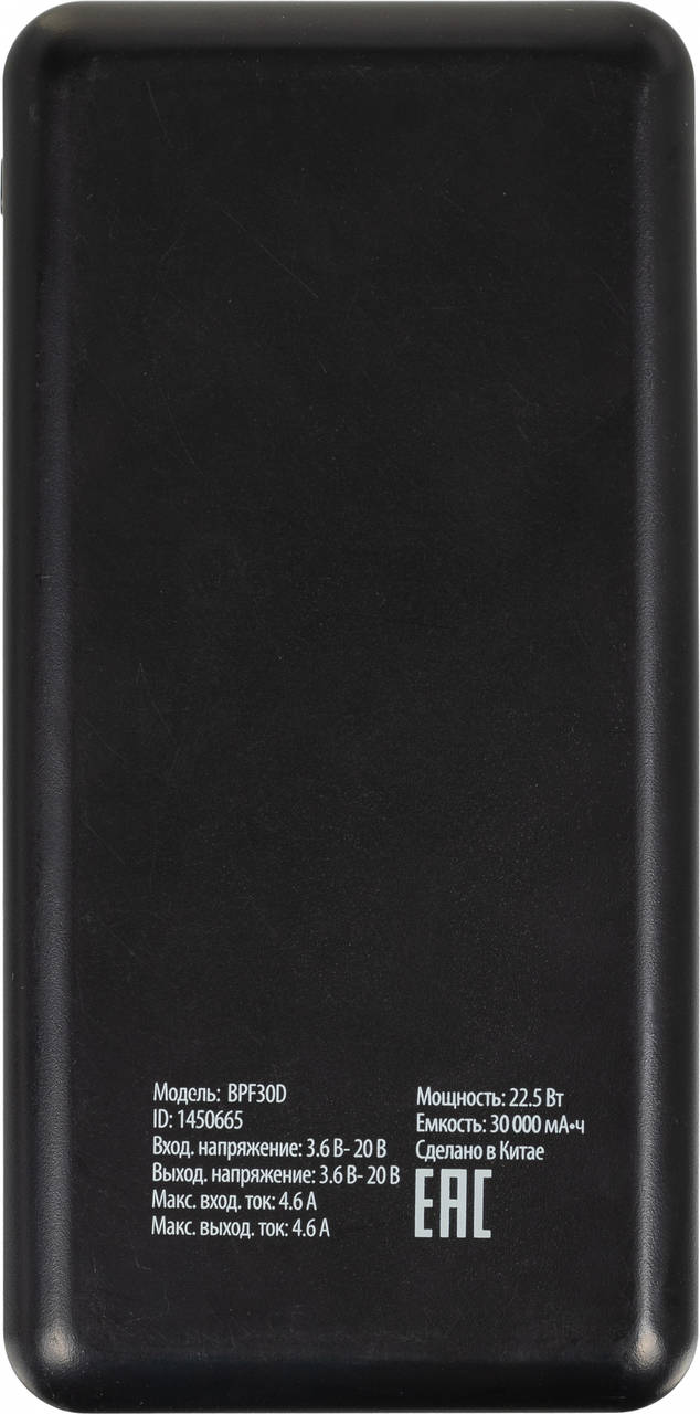 Внешний аккумулятор BURO Мобильный аккумулятор BPF30D 30000mAh QC4.0/PD3.0 22.5W 3A 2xUSB-A/USB-C черный1825553-11825553-101825553-111825553-21825553-31825553-41825553-51825553-61825553-7