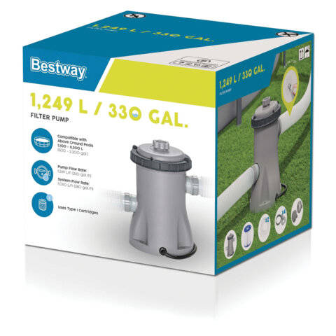 Картриджный фильтр-насос BESTWAY для бассейнов от 183 до 366 см предназначен для фильтрации воды в бассейне. Фильтрующий водный насос BESTWAY подойдет для каркасных и надувных бассейнов диаметром 305-366 см. Производительность – 1249 литров в час.