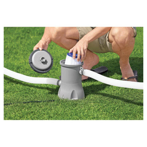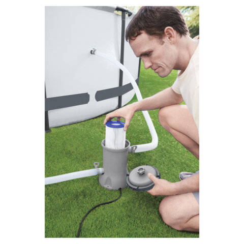 Картриджный фильтр-насос BESTWAY 58383 для бассейнов диаметром 366–457 см обеспечивает эффективную очистку воды. Подходит для каркасных и надувных бассейнов. Производительность насоса — 2006 литров в час. Принцип работы фильтра очень прост: вода прокачивается через отверстие по шлангу, проходит фильтрацию через специальный картридж (тип II) и возвращается обратно в бассейн уже очищенной. Замена картриджа требуется раз в две недели при непрерывной работе.