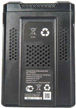 Аксессуар для электроинструмента GREENWORKS Батарея аккумуляторная Greenworks G60B4 60В 4Ач Li-Ion (2918407) (2918407)