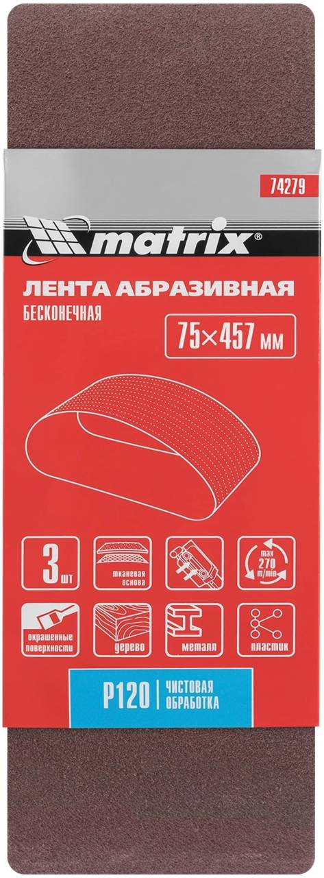 Аксессуар для электроинструмента MATRIX Лента абразивная для ленточных шлифмашин 74279