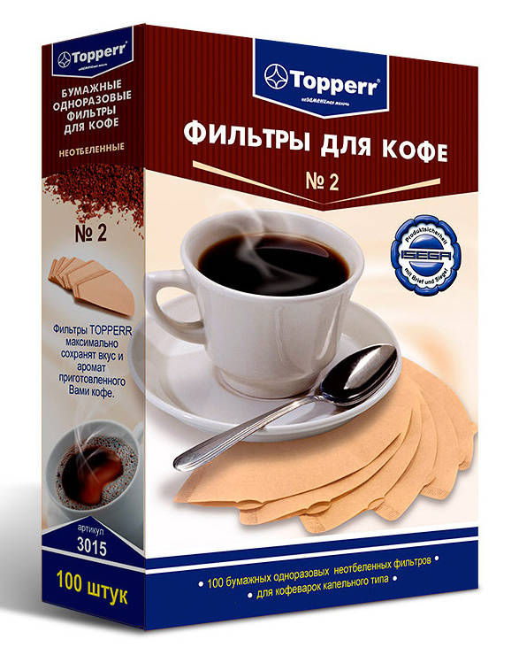 Аксессуары для кофеварок TOPPERR Фильтры для кофе для кофеварок капельного типа Topper №2 неотбеленные 1x2 (3015)