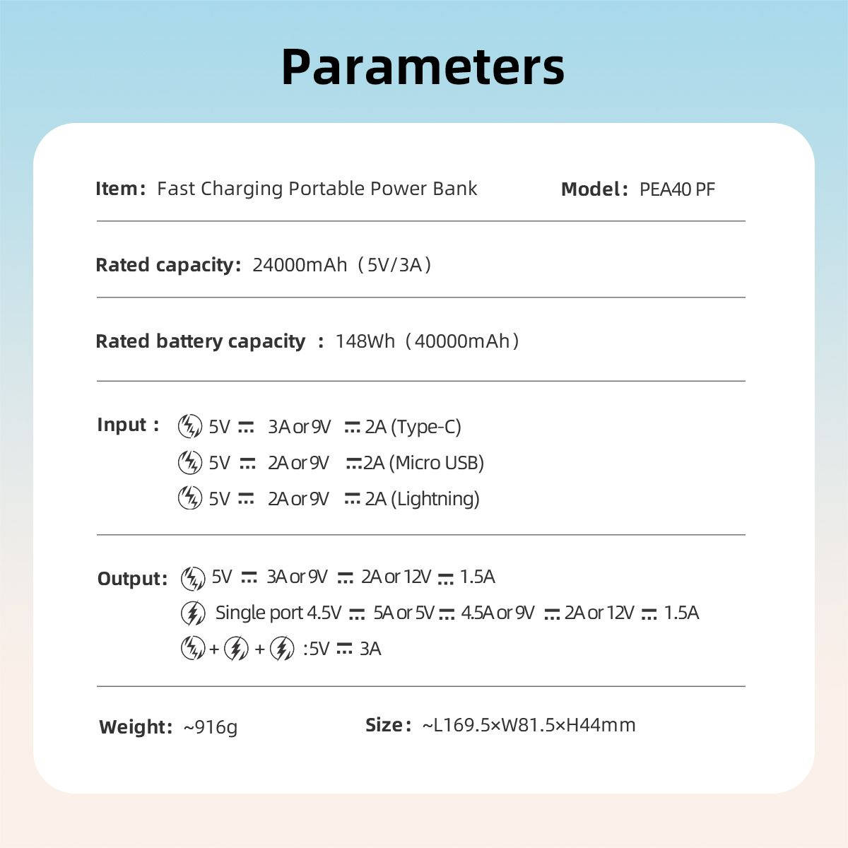 | Емкость батареи: | 40000 |