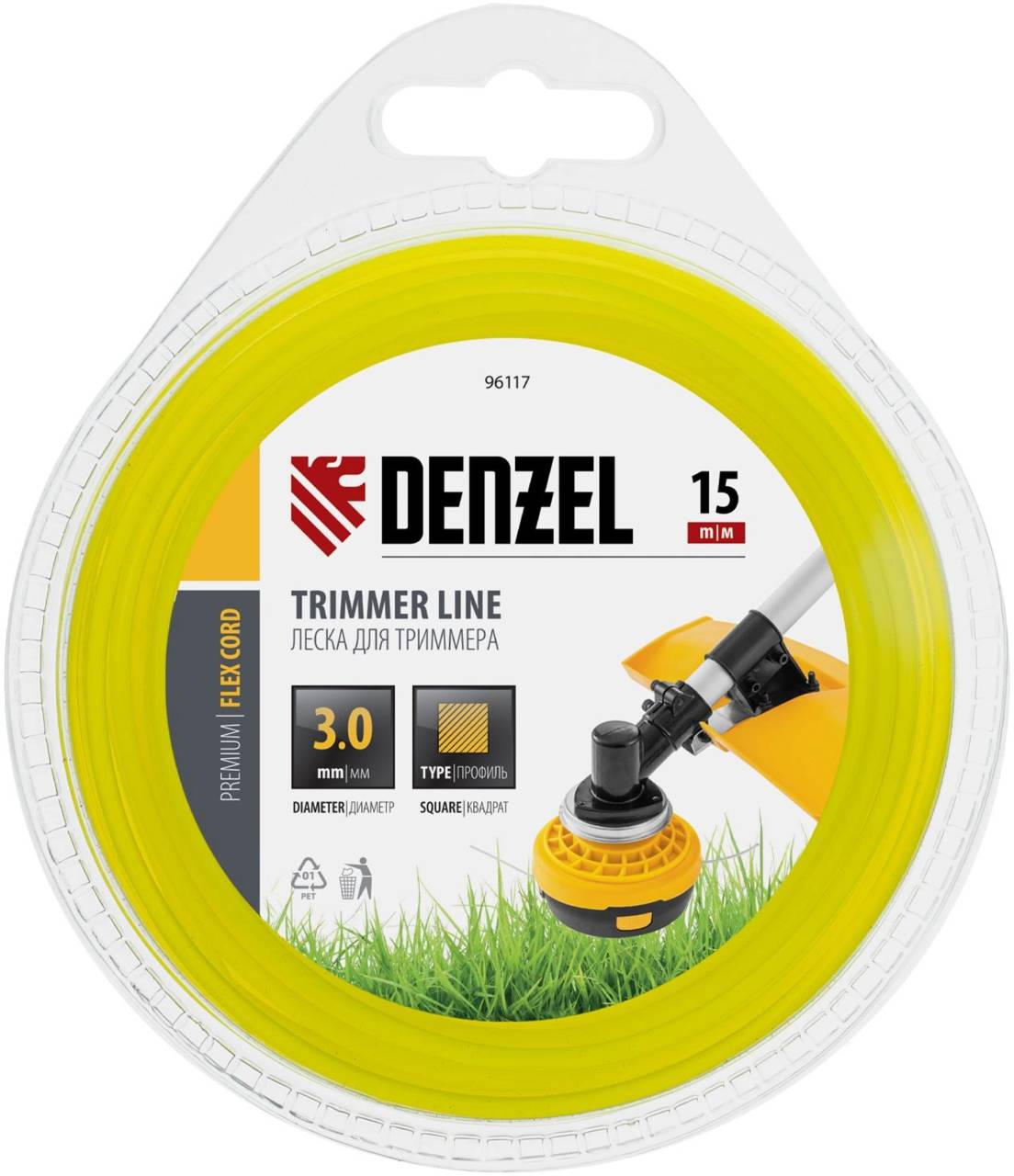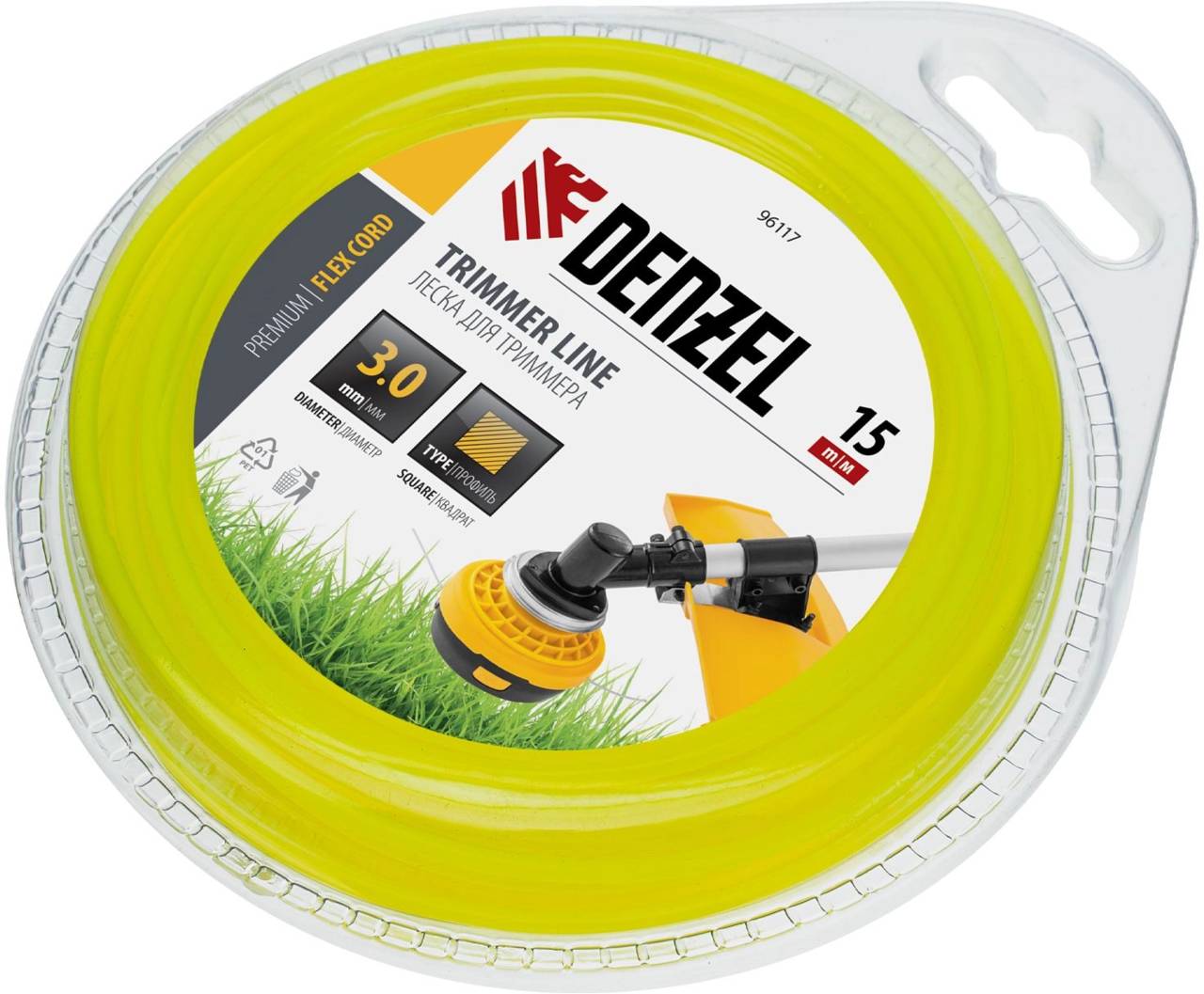 Аксессуар для садового инструмента DENZEL Леска для садовых триммеров 96117 d=3мм L=15м