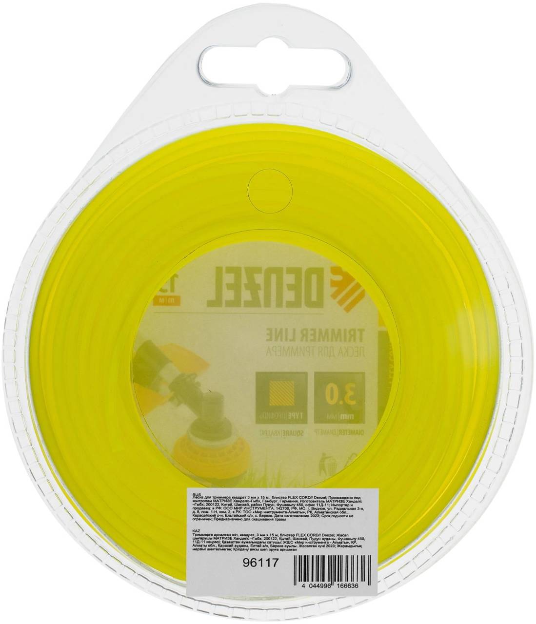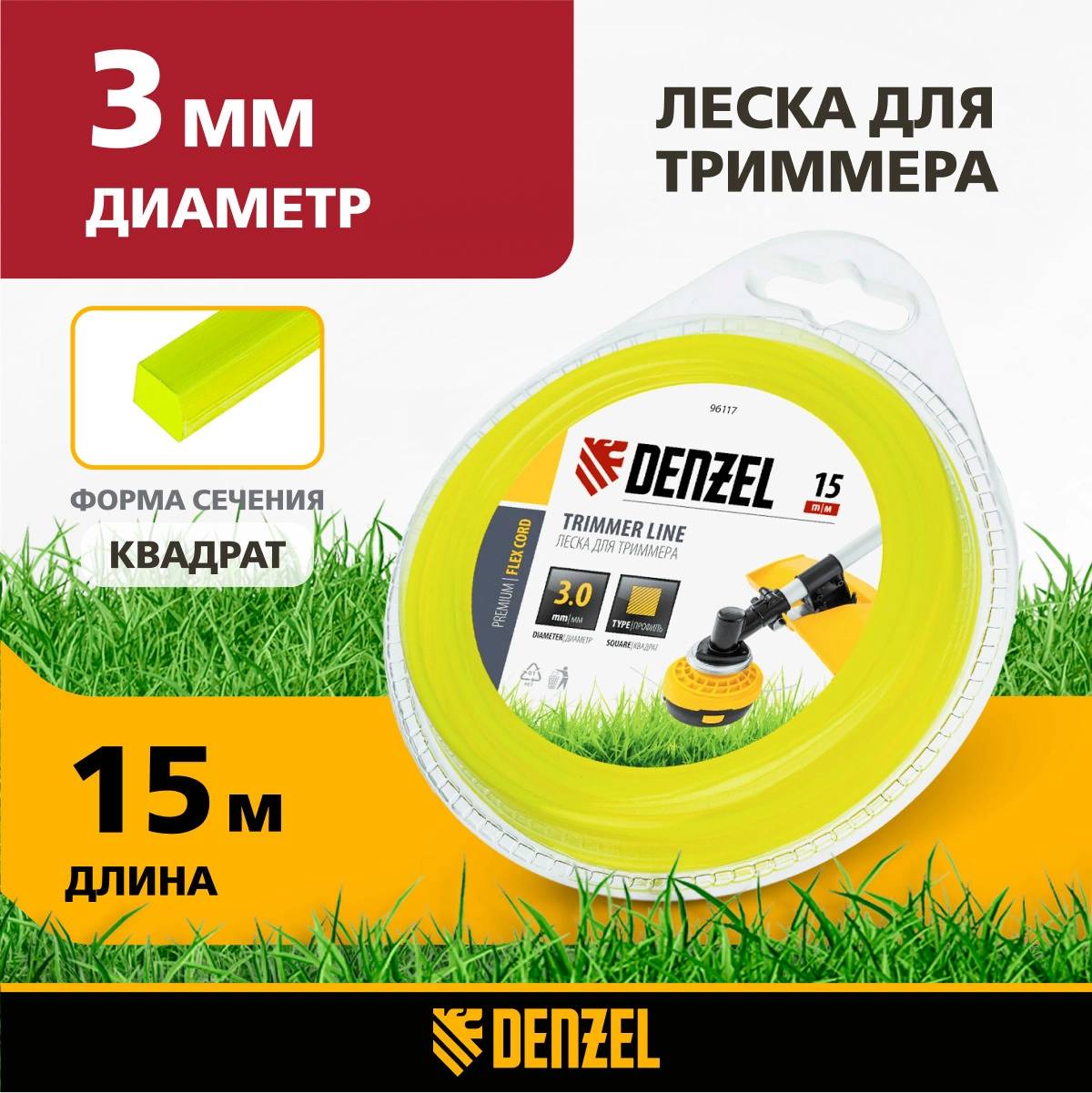 | Описание: | Леска для триммера, квадрат 3 мм х 15 м, блистер Flex cord DENZEL 96117 |