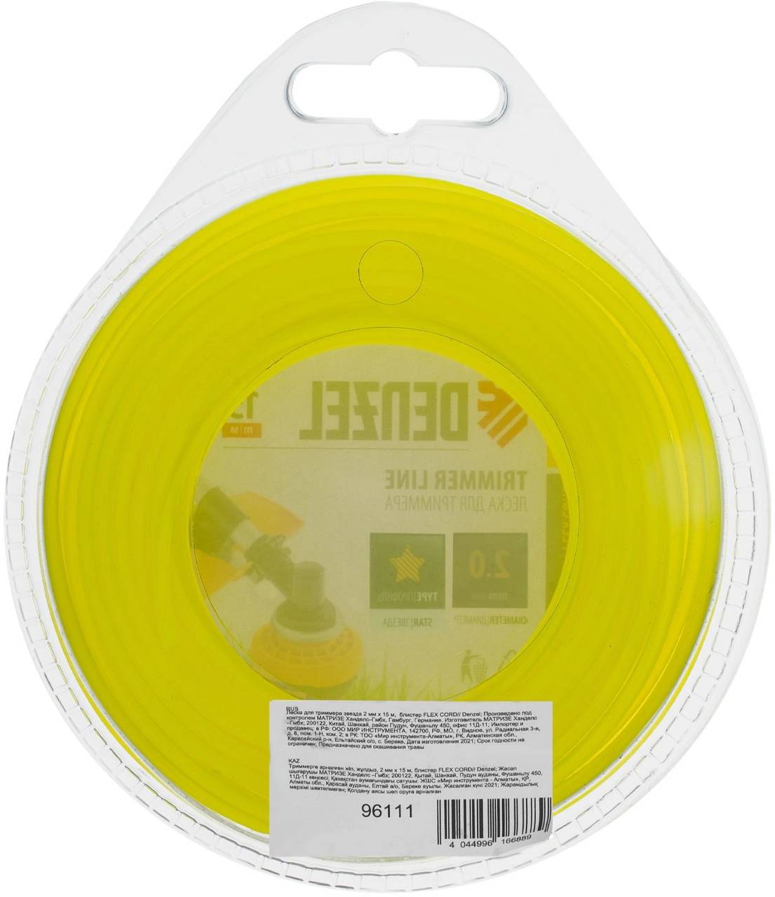 Аксессуар для садового инструмента DENZEL Леска для садовых триммеров 96111 d=2мм L=15м