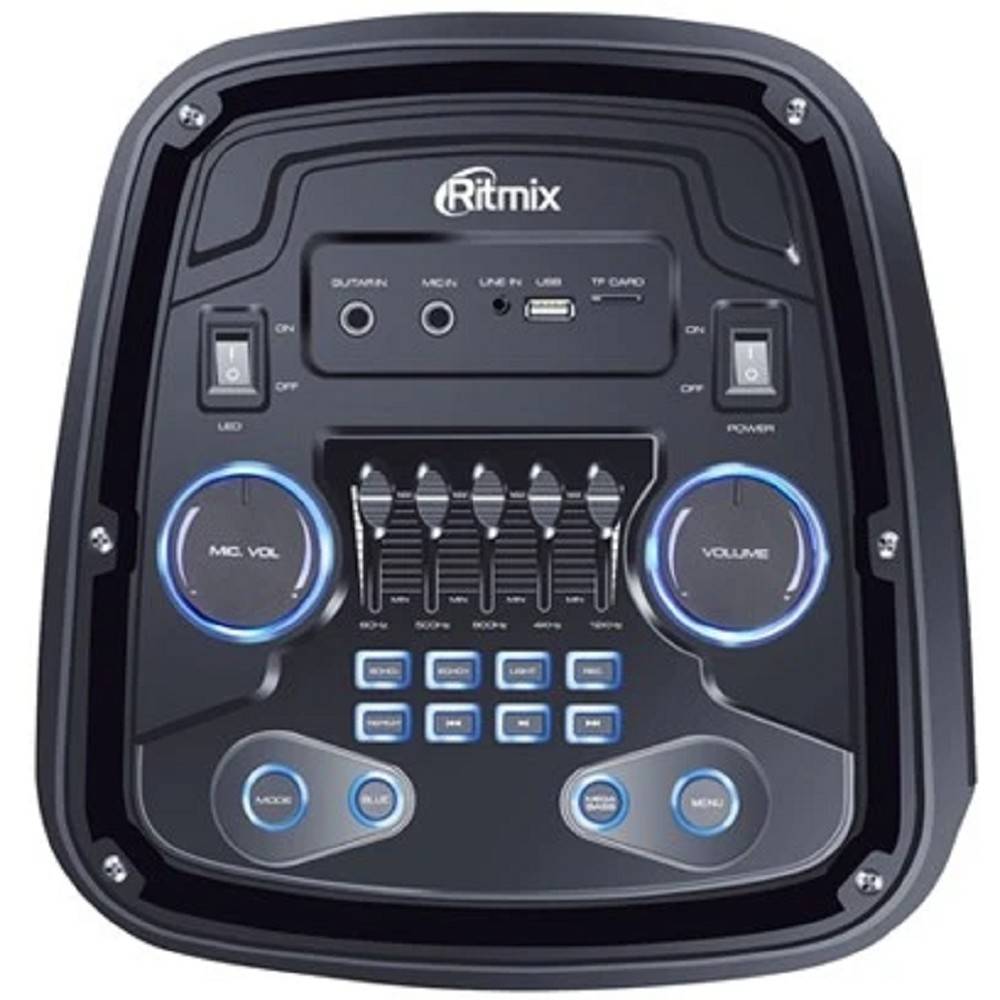 Акустическая система RITMIX SP-935B black {Bluetooth, 30 Гц -18 КГц, FM-радио, RGB-подсветка, AUX, USB, microSD , дисплей: LED, до 6 часов работы, 2 микрофонных входа под Джек 6,3мм}