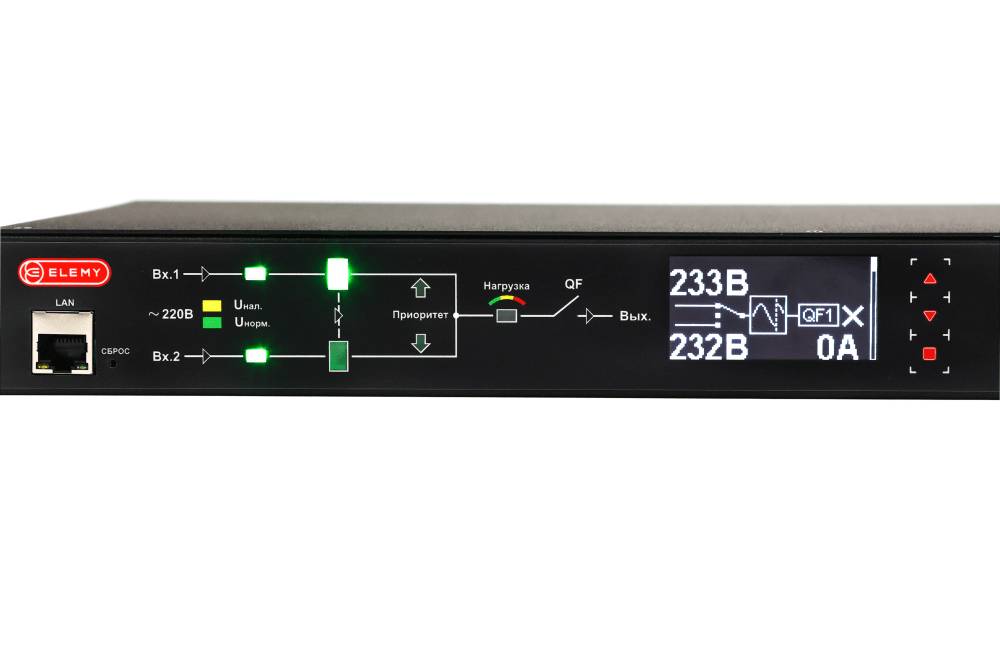 АВР Elemy RACK ATS, 1U, 220В, 16А, OLED, Ethernet, in C13 ATS-1204/16