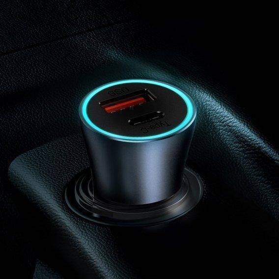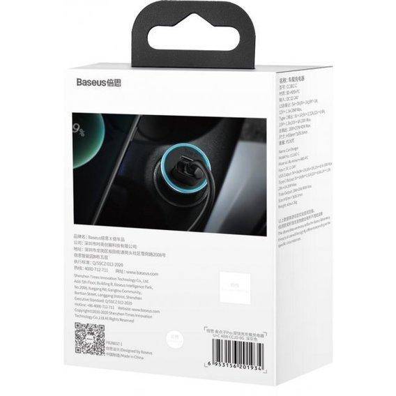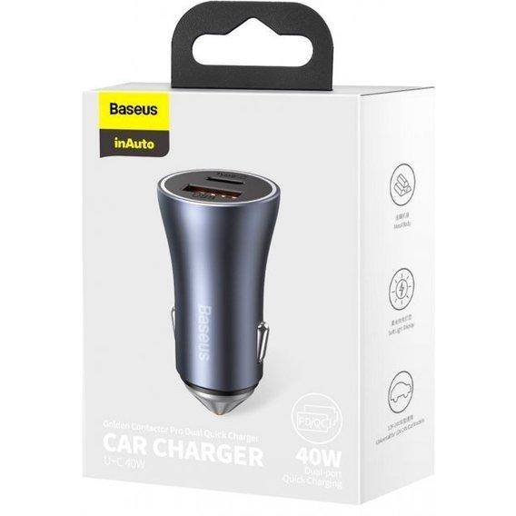 Автоаккумулятор, зарядное устройство Baseus Автомобильное зарядное Golden Contactor Pro Dark Gray