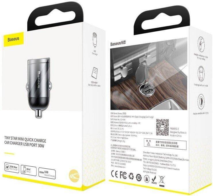 Автоаккумулятор, зарядное устройство Baseus Автомобильное зарядное Tiny Star Mini Gray