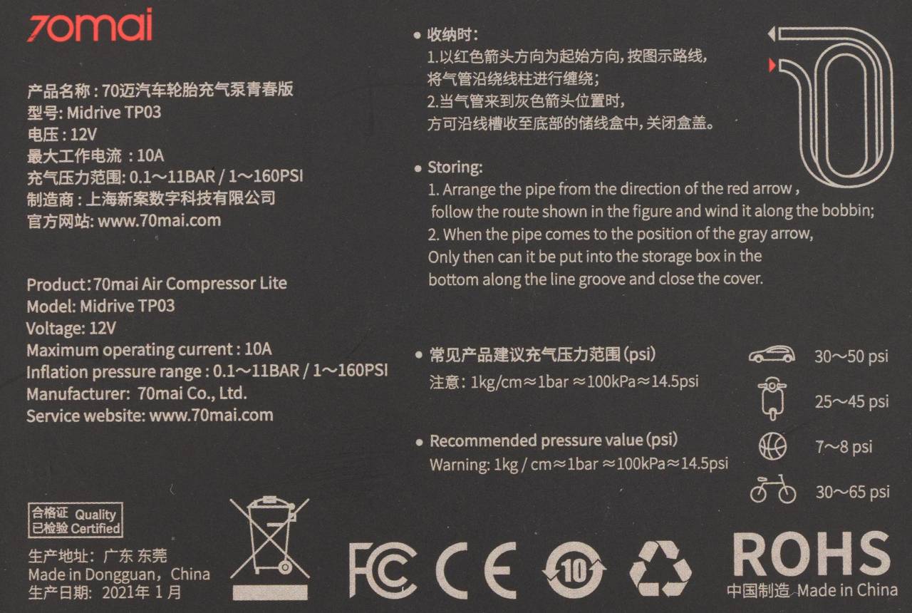 Автоаксессуар 70MAI Автомобильный компрессор Air Compressor Lite