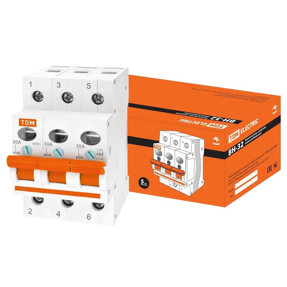 | Наименование: | Выключатель нагрузки (мини-рубильник) ВН-32 3P 50A TDM |