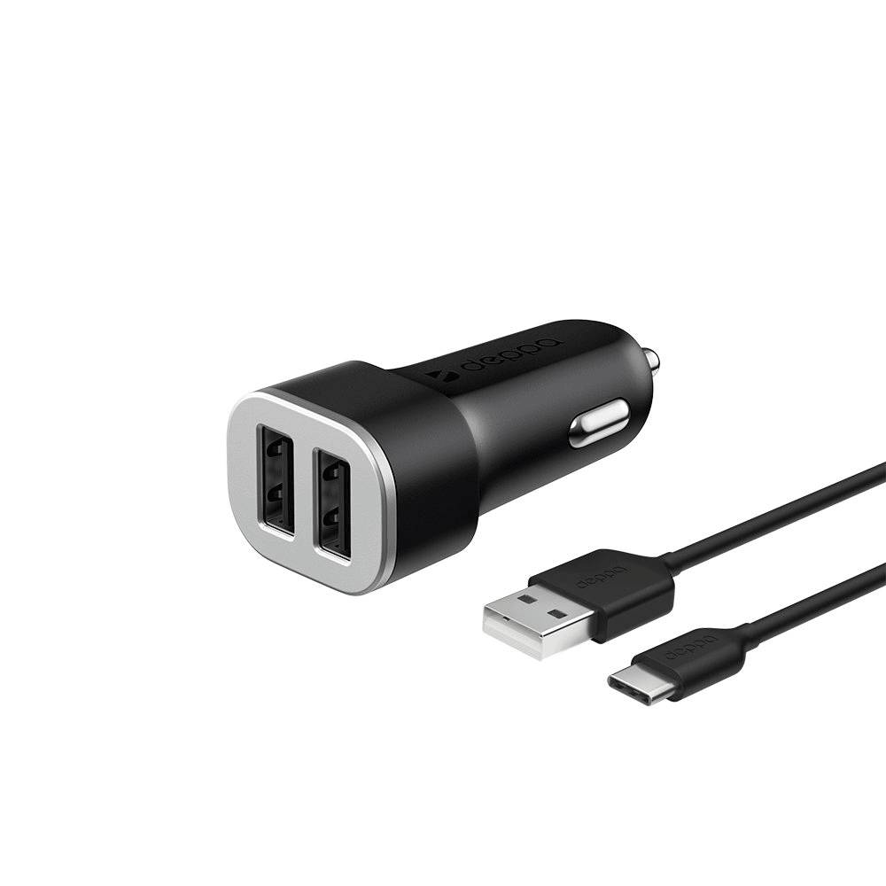 Автомобильная зарядка для устройств DEPPA Зарядное устройство АЗУ 2 USB 2.4А + кабель USB Type-C, черный, 11284
