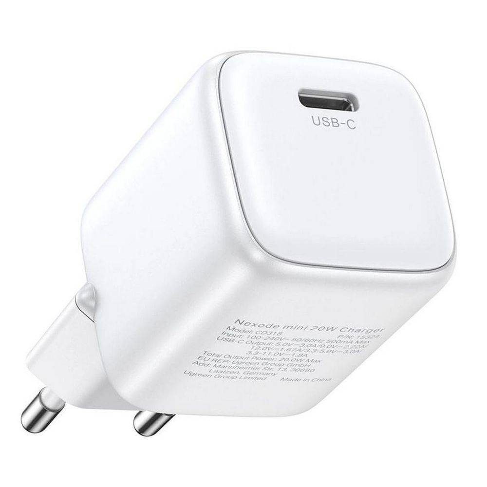 Автомобильная зарядка для устройств UGREEN Сетевое зарядное устройство CD318 Nexode 20W USB-C PD GaN Fast Charger EU. Цвет: белый
