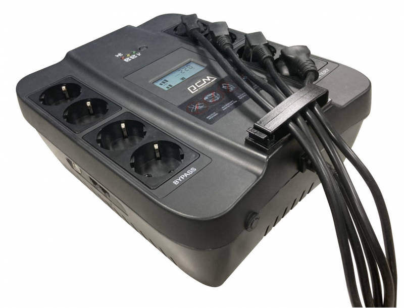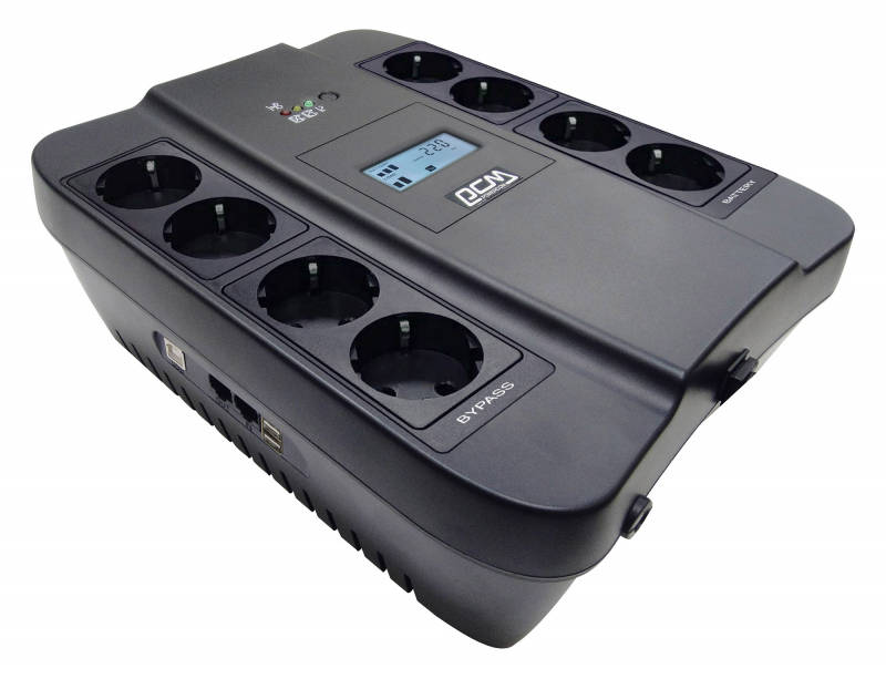 ИБП серии SPIDER SPD-550U LCD USB / SPD-750U LCD USB / SPD-900U LCD / SPD-1100U LCD USB позволяет подключить до 8-ми устройств одновременно через разъемы Schuko. 4 розетки имеют батарейную поддержку, а 4 дополнительные - без батарейной поддержки, но с фильтрацией для безопасного подключения, например, лазерного принтера или копира.
