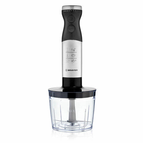 Блендер BRAYER погружной BR1244, 800 Вт, 8 скоростей, 4 насадки, стакан, черный