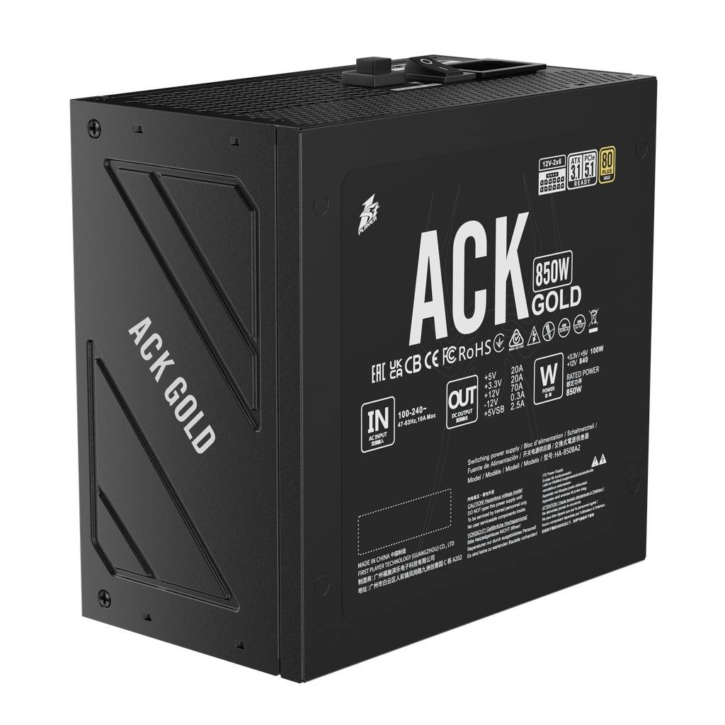 Блок питания 1STPLAYER ACK GOLD 850W Black / ATX 3.1, PCle 5.1, APFC, 80 PLUS Gold, LLC+DC-DC, full Teapo caps, 140mm fan, full modular / HA-850BA2-BK
