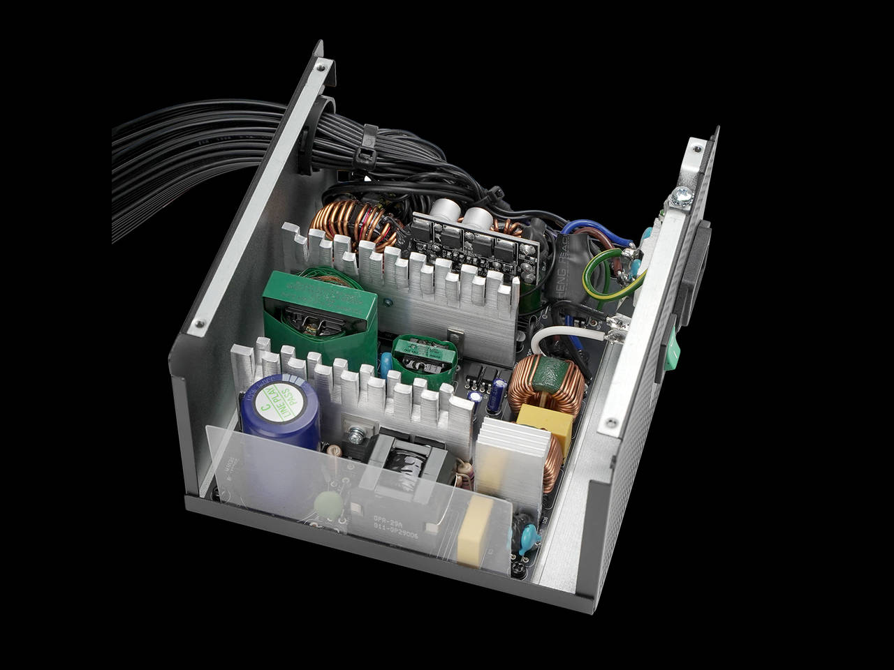 20+4 pin, Active PFC+DC to DC, 120mm fan, Taiwan capacitor, 1x24 PIN (20+4) (500mm), 6xSATA (400/100/100mm), 3xMOLEX (400/100/100), 1x8PIN PCIe (6+2) (500/120mm), 1x8PIN EPS (4+4) (620/120mm)