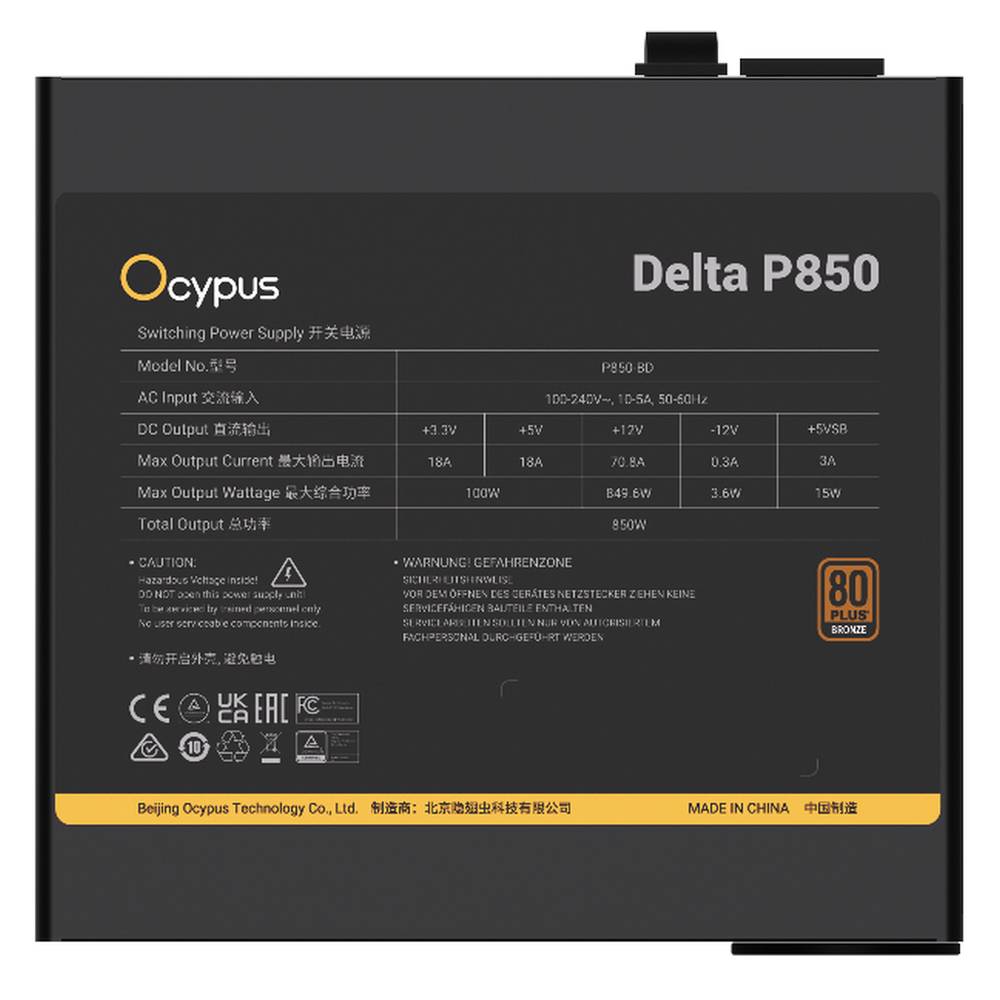 Блок питания Ocypus PSU Delta P850 [P850-BD] 850W / APFC / JP capasitors / 80+ Bronze