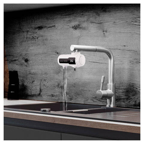 Модель оснащена цифровым дисплеем с точностью отображения температуры до 1C, механическим управлением и двумя уровнями защиты: автоматическим отключением при перегреве и отсутствии воды. Класс пылевлагозащиты IPX4 гарантирует безопасность в условиях повышенной влажности. Установка занимает минуты — в комплекте идут все необходимые переходники для подключения к стандартному смесителю. Подключение к сети 220–240 В через кабель с вилкой (сечение 2,5 мм2), рабочее давление — от 0,4 до 6 бар. Вес устройства — 0,9 кг.