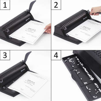• инструкция по подбору пружин к количеству переплетаемых листов нанесена на машину.