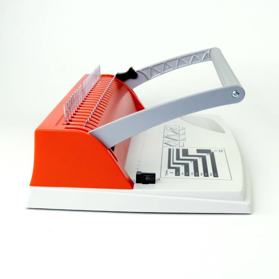 Базовый переплетчик на пластиковую пружину. Подходит для использования в малом офисе и дома. Дает возможность сделать практичный и экономичный переплет на пластиковую пружину диаметром до 19 мм, это блок объемом в 150 листов (80 г/м2). Такой вид переплета позволяет свободно пользоваться оформленным материалом: раскрывать документ на любой градус, копировать, заменять, добавлять и убирать листы.
