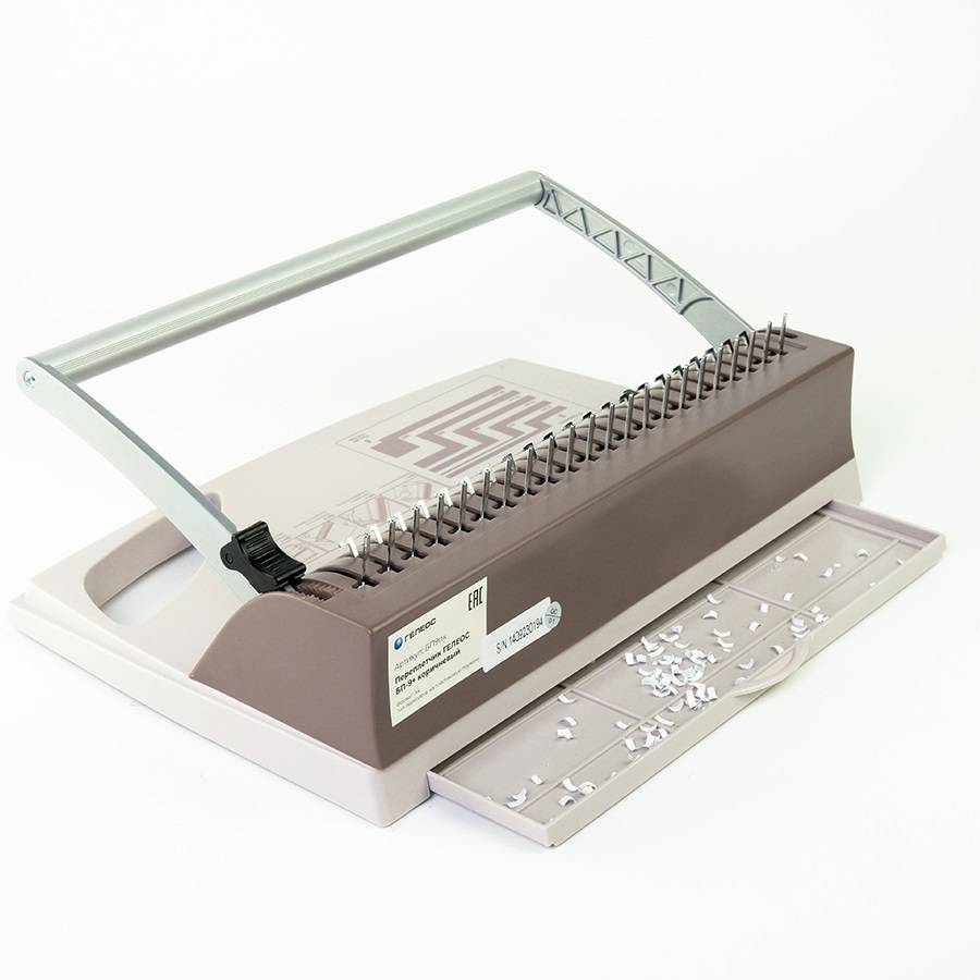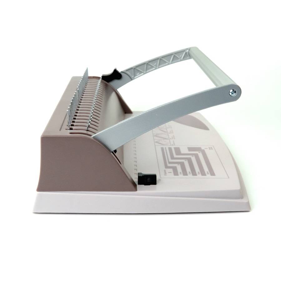 Базовый переплетчик на пластиковую пружину. Подходит для использования в малом офисе и дома. Дает возможность сделать практичный и экономичный переплет на пластиковую пружину диаметром до 19 мм, это блок объемом в 150 листов (80 г/м2). Такой вид переплета позволяет свободно пользоваться оформленным материалом: раскрывать документ на любой градус, копировать, заменять, добавлять и убирать листы.