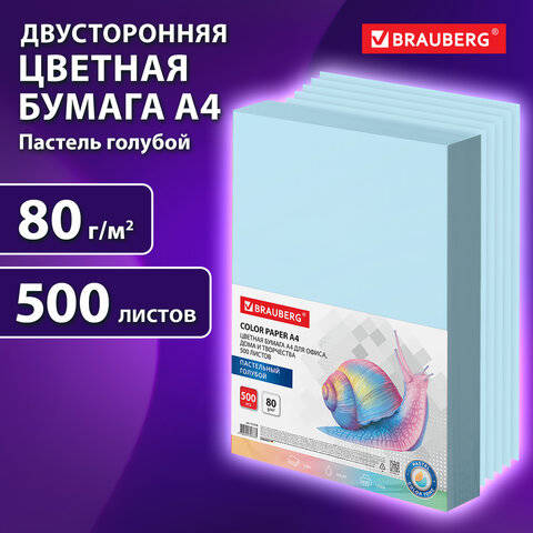 Цветная бумага BRAUBERG предназначена для использования в офисе и дома. Идеально подойдет для офисной техники, оформления писем и приглашений, в качестве разделителей для архивации, а также для детского творчества (изготовления поделок и аппликаций). Упакована в пачку из 500 листов формата А4. В упаковке бумага пастельного тона голубого цвета. Листы бумаги плотностью 80 г/м2 подходят для офисной техники.