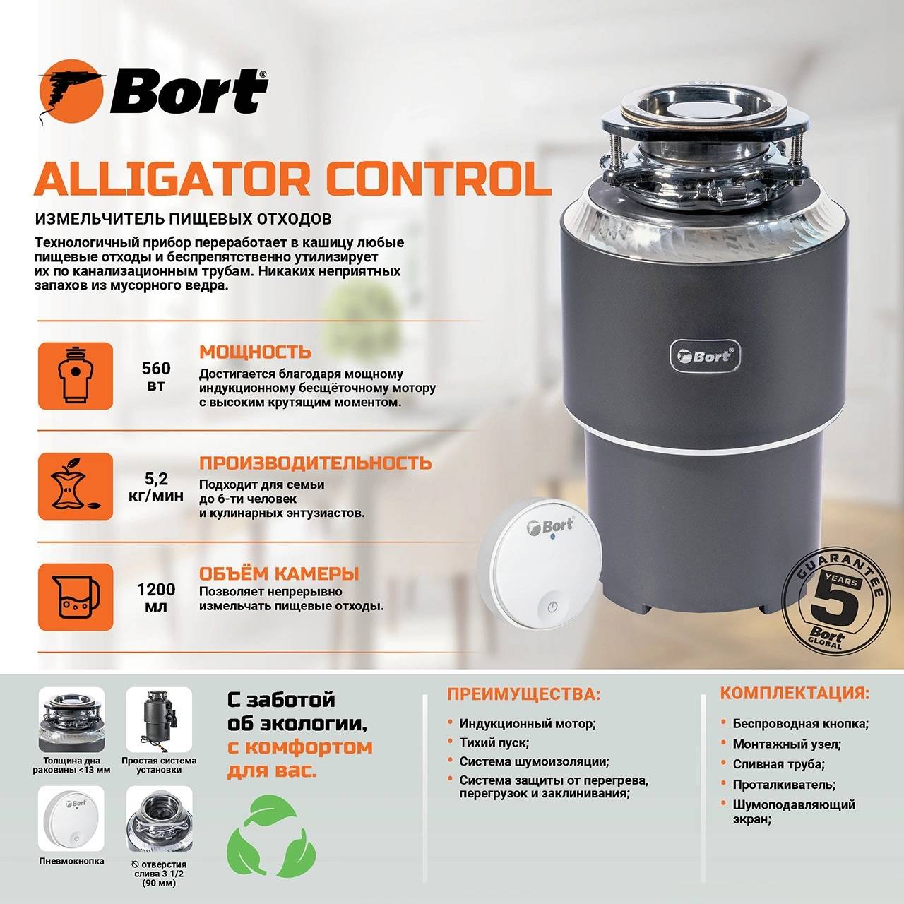 Бытовая техника BORT Измельчитель Alligator Control 560Вт серый