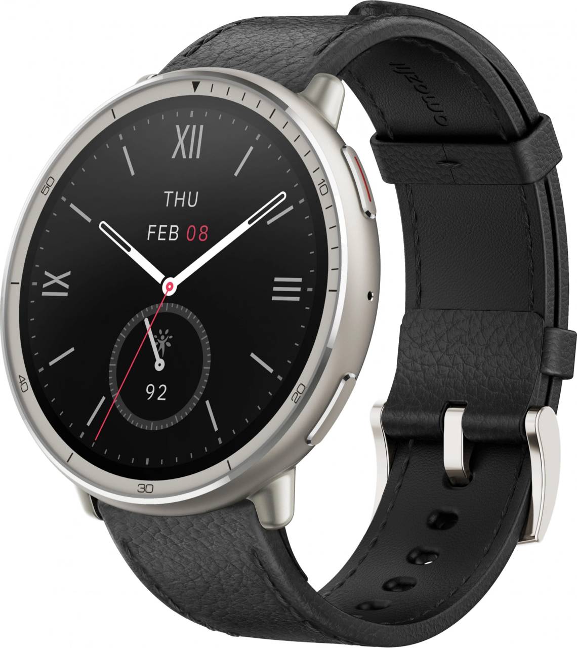 Умные часы, браслет AMAZFIT Смарт-часы Active 2R A2437 Premium 43.9мм 1.32" AMOLED корп.серебристый рем.черный разм.брасл.:150-210мм