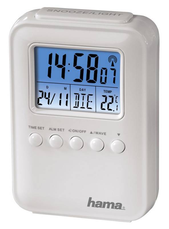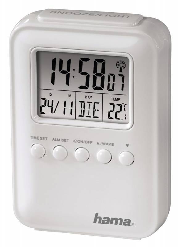 Часы Будильник Hama H-104915 дорожный цифр. Fashion (DCF) термометр (-10 С) 7.6x3.4x10.9 см пластик бел
