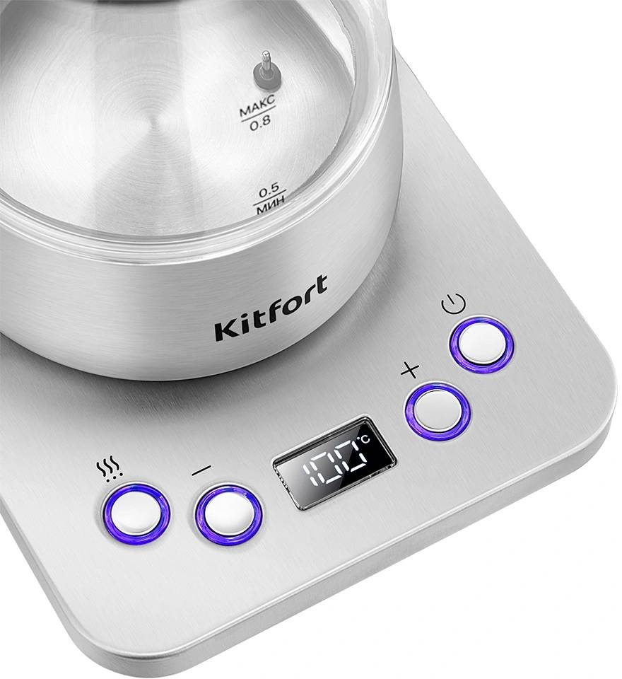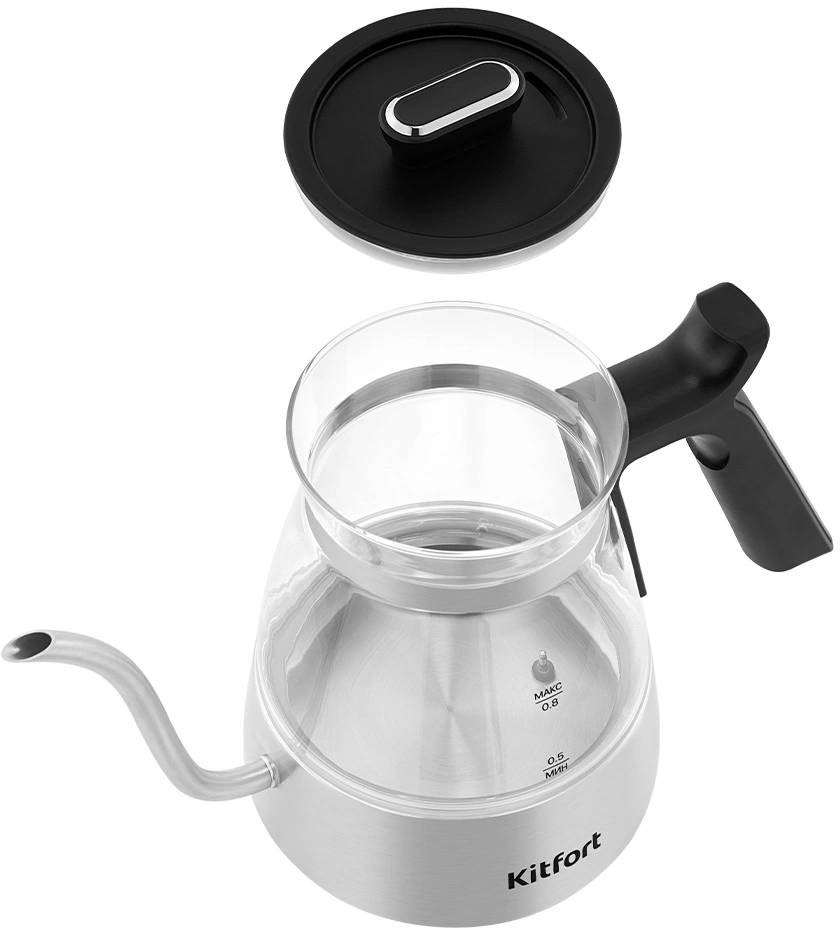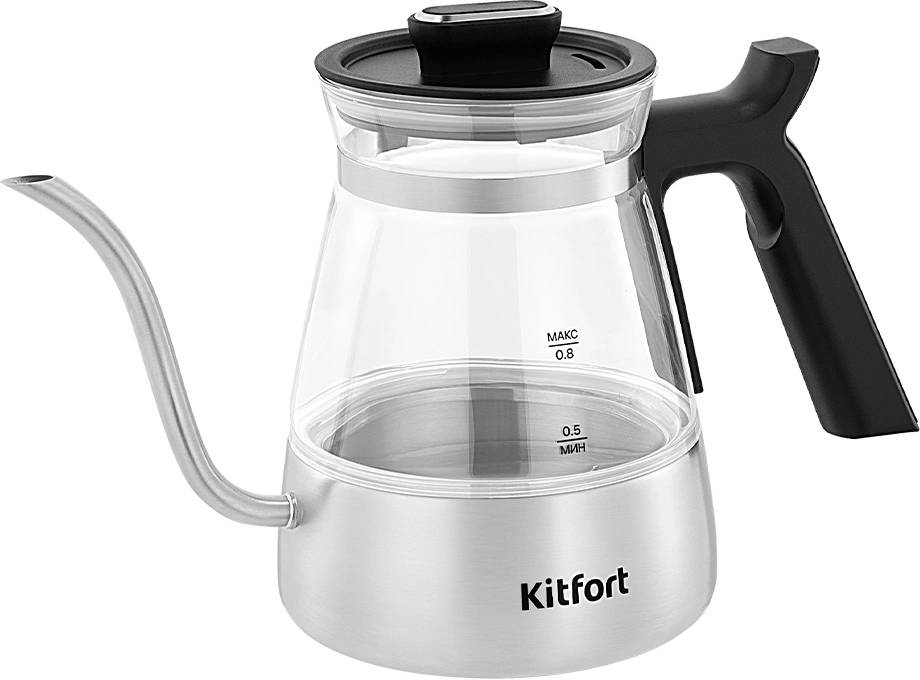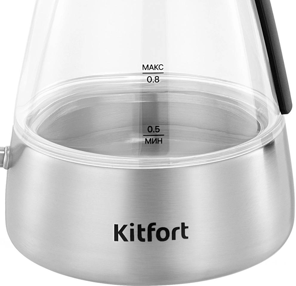 Чайник/Термопот KITFORT Чайник электрический КТ-8707 0.8л. 1300Вт нержавеющая сталь/черный корпус: стекло/металл/пластик