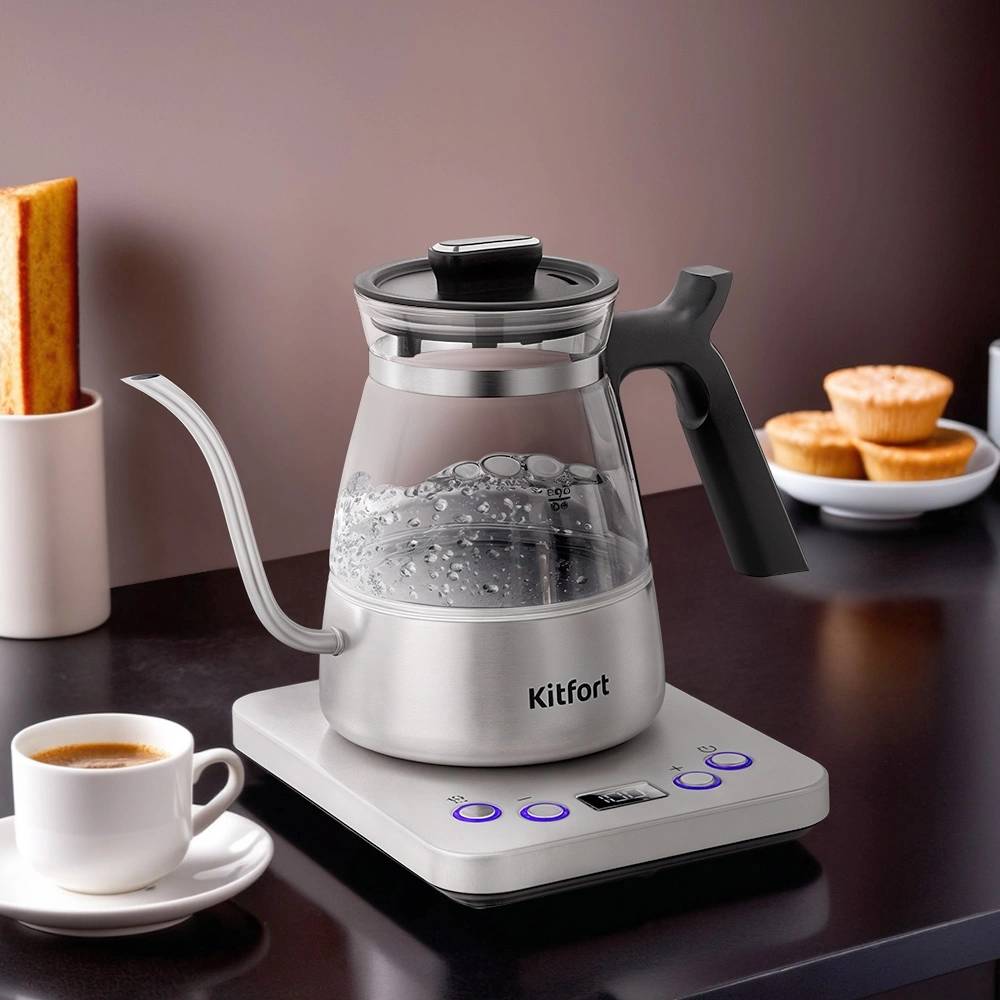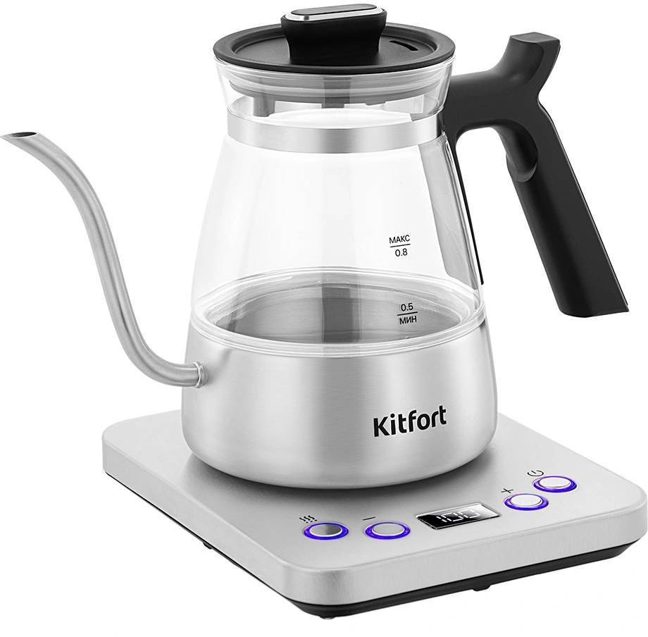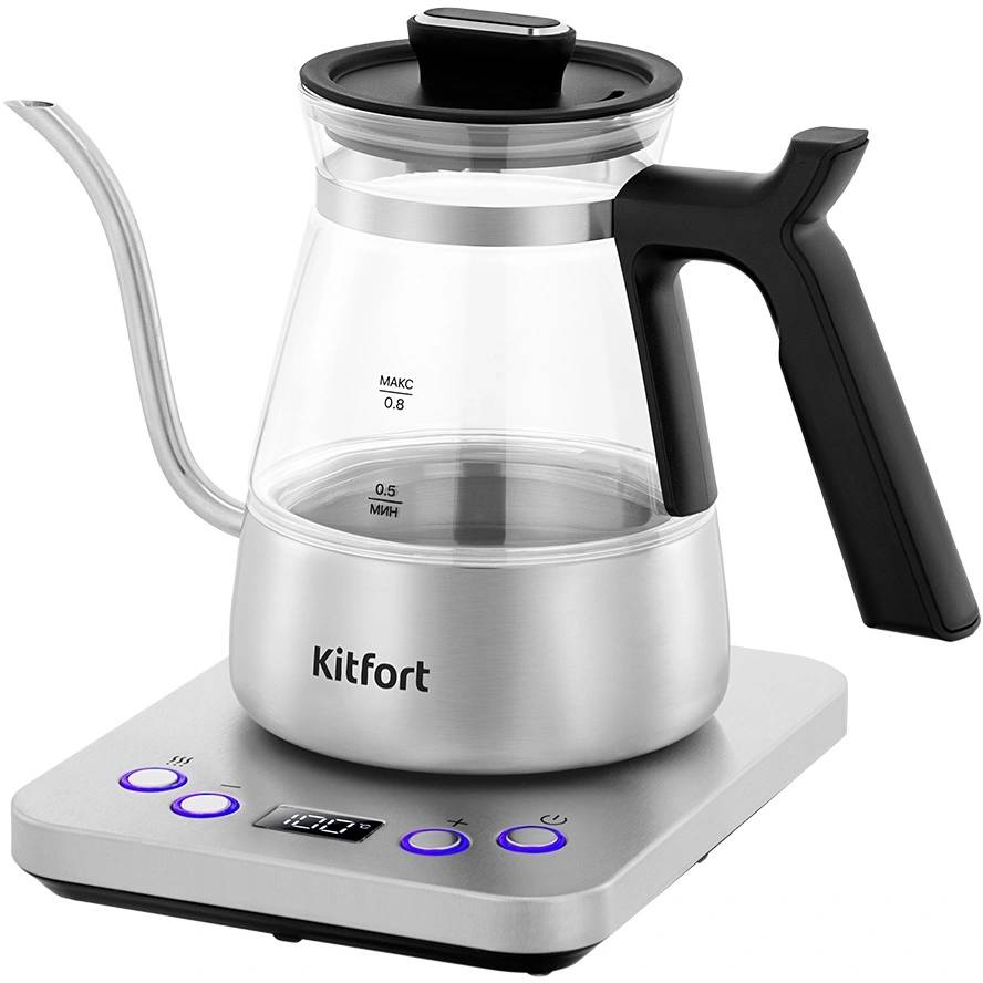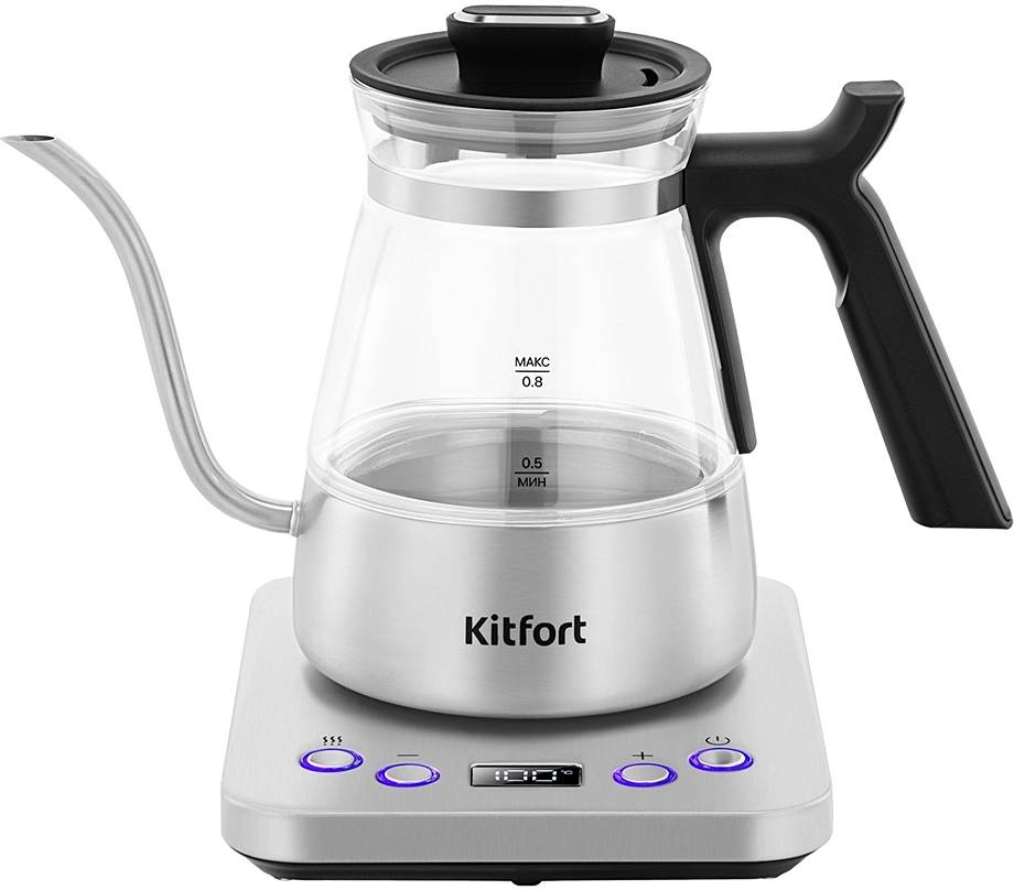 Чайник/Термопот KITFORT Чайник электрический КТ-8707 0.8л. 1300Вт нержавеющая сталь/черный корпус: стекло/металл/пластик
