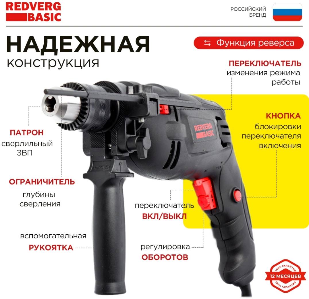 Дрель REDVERG ударная ID500 Basic 500Вт ключевой реверс