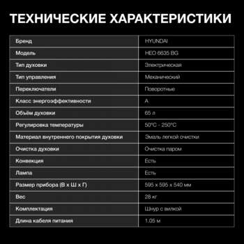 | Описание: | Духовой шкаф HYUNDAI Электрический HEO 6635 BG черный |