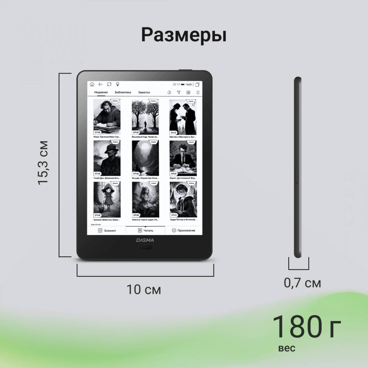 | Описание: | Электронная книга Digma A6 6" E-Ink Carta 758x1024 600MHz 1Gb/4Gb/SD/microSDHC/подсветка дисплея темно-серый (A6G) |