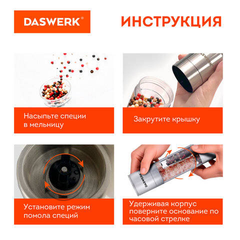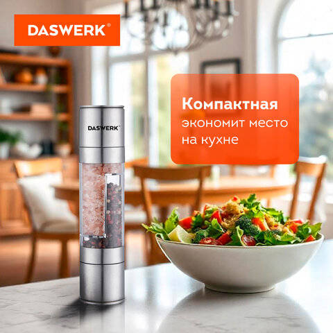 Электроперечница DASWERK Мельница для специй, 2 в 1, 4 уровня помола, механическая, нержавеющая сталь, , 456627