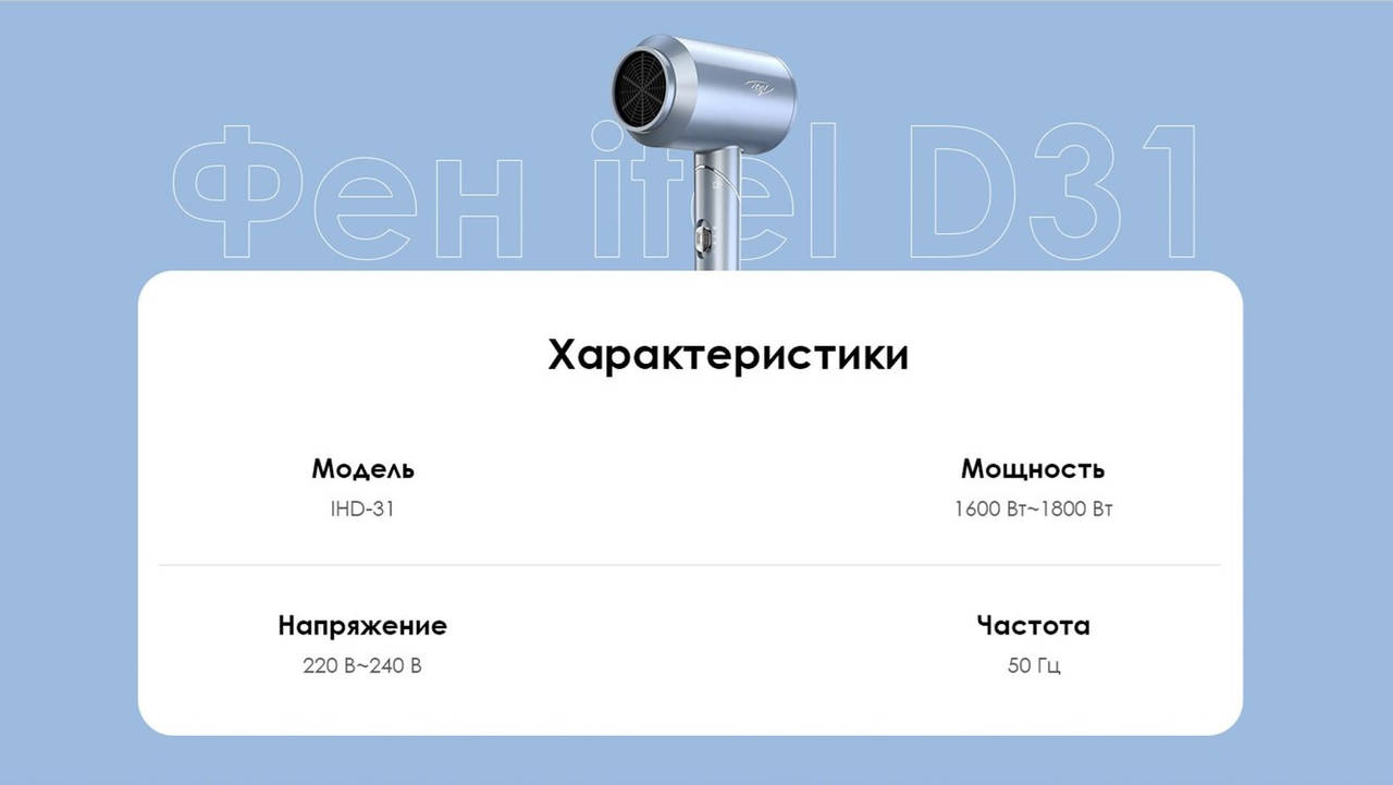 Фен для волос Itel Фен IHD-31 1800Вт голубой