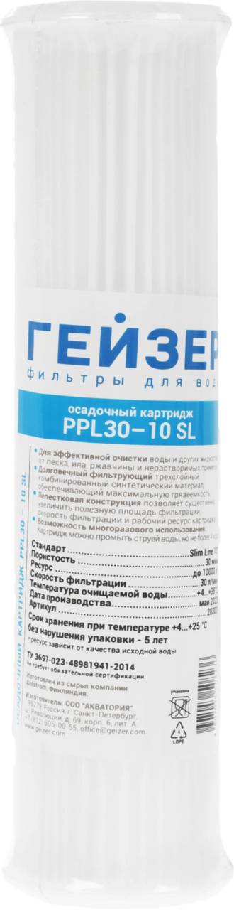 Гейзер Картридж PPL 30-10SL для проточных фильтров ресурс:10000л (28303)