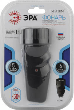 Фонарь ЭРА Фонарь аккумуляторный Эра SDA30M черный 0.5Вт лам.:светодиод. (Б0020022) (Б0020022)