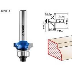 Фрезерная машина Фреза кромочная калевочная №1, D= 19мм, рабочая длина-7,4мм, радиус-3,2мм, хв.-8мм, d-12,7мм, Профессионал [28701-19] (28701-19)