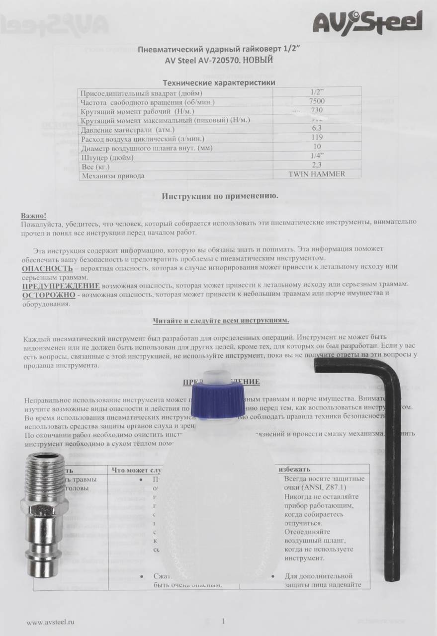Комплектация:Пневмогайковерт, инструкция, упаковка.