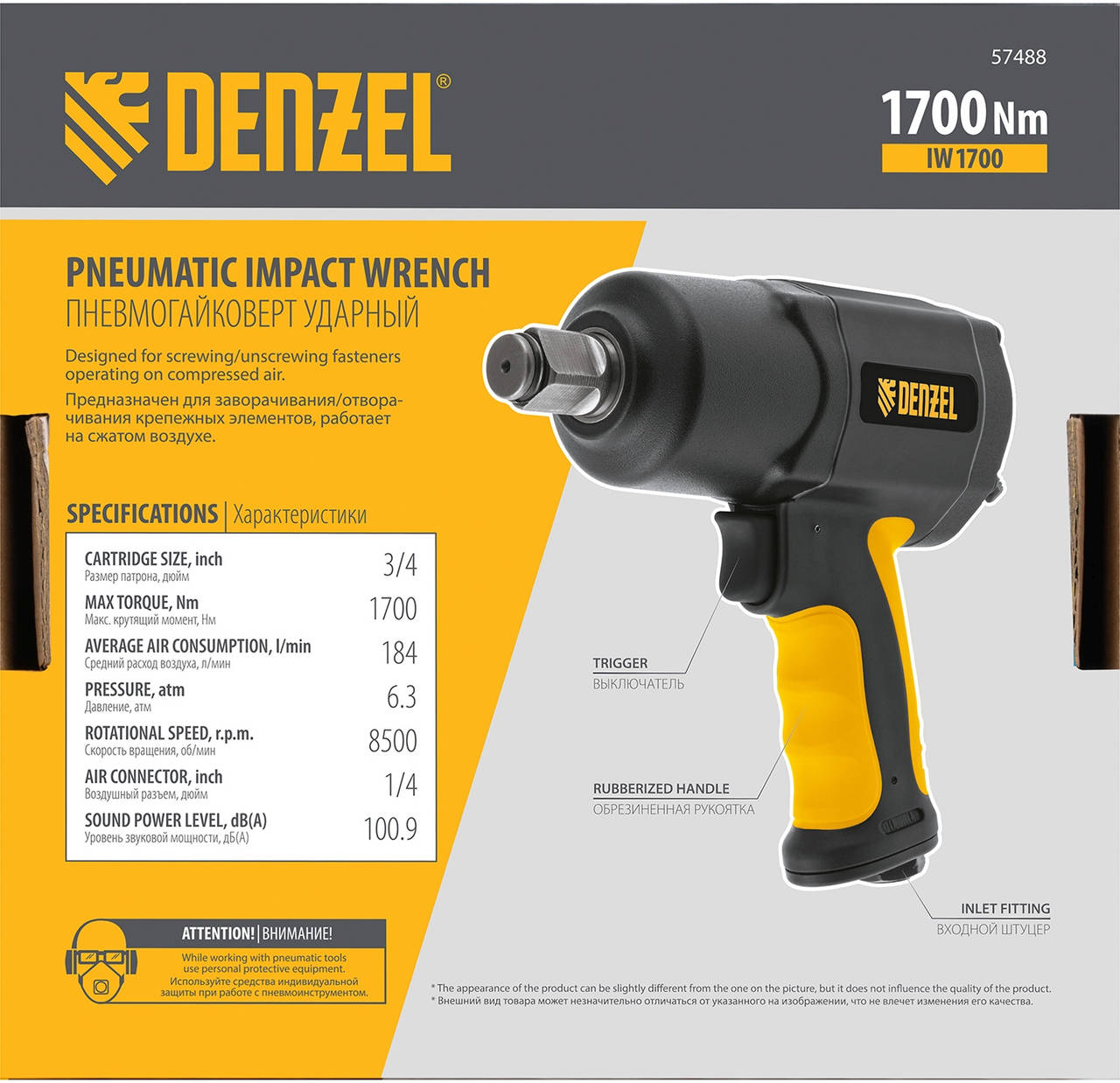 Гайковерт DENZEL IW1700 184л/мин желтый/черный