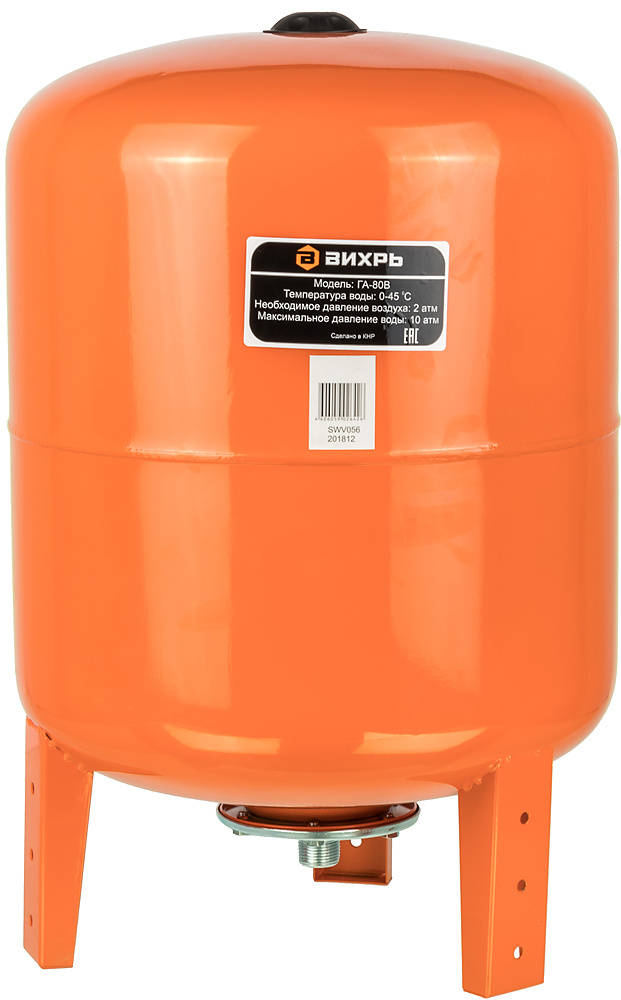 Гидроаккумулятор ВИХРЬ ГА-80В 80л 10бар оранжевый
