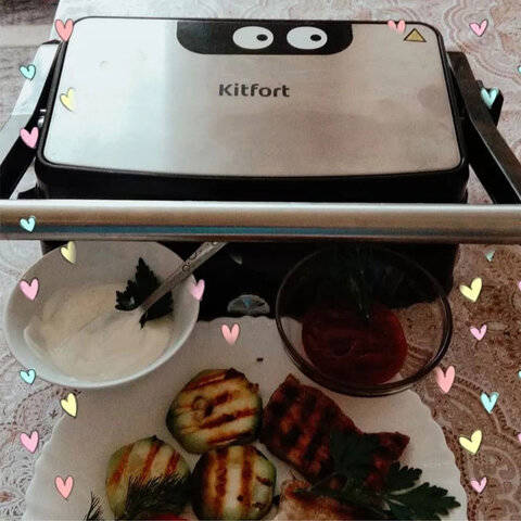 | Описание: | Приготовьте любимые блюда быстро и с ароматом настоящего гриля с электрогрилем Kitfort KT-1656 — мощным, удобным и универсальным решением для дома. Этот прибор идеально подходит для жарки мяса, рыбы, овощей, сосисок, сэндвичей, тостов и гренок! Модель мощностью 2000 Вт обеспечивает быстрый и равномерный нагрев, а ребристая поверхность панелей (279 ? 229 мм) создаёт аппетитные «полоски» на продуктах, как при приготовлении на открытом огне. Панели выполнены из алюминия с антипригарным покрытием, что исключает прилипание продуктов и упрощает очистку — достаточно протереть их мягкой губкой пока они ещё тёплые. Управление простое и интуитивное: плавная регулировка температуры от 100–140C до 180–220C позволяет точно подобрать режим для каждого типа продуктов. Световые индикаторы показывают включение питания и активацию нагревательного элемента. Режим барбекю 180 позволяет откинуть крышку на всю ширину — гриль превращается в открытую жаровню, где можно одновременно готовить на двух поверхностях. Для этого предусмотрена специальная кнопка на корпусе. Габариты устройства: 332 х 319 х 118 мм, вес — 2,5 кг, длина сетевого шнура — 0,7 м. Несмотря на компактность, гриль занимает мало места на столе и легко хранится. Подходит для использования дома, на даче или в офисе. Производитель оставляет за собой право без предварительного уведомления вносить изменения в технические характеристики, комплектацию и конструкцию, не ухудшающие эксплуатационные характеристики изделия. |