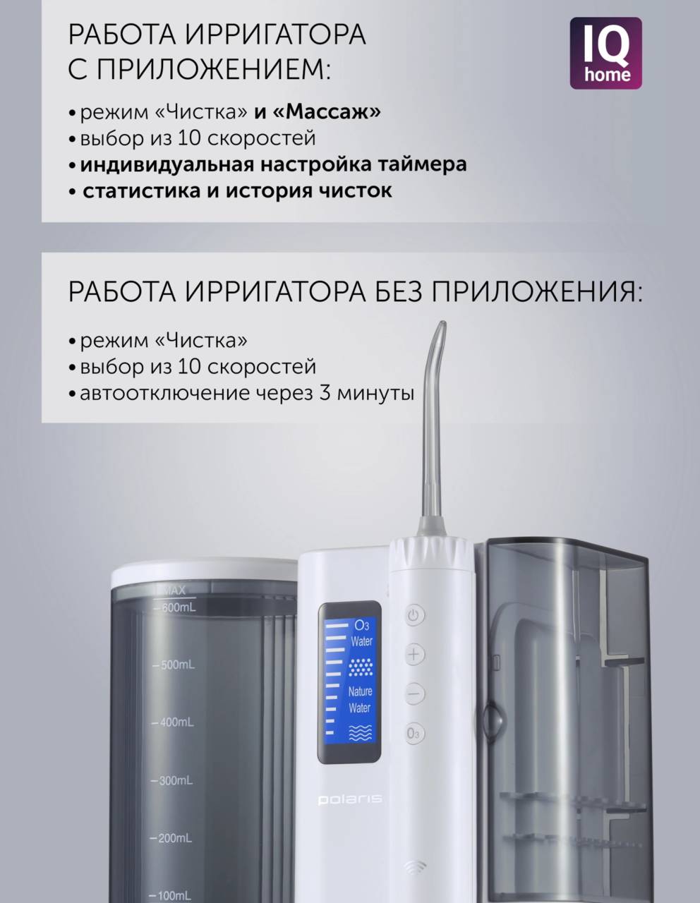 Ирригатор POLARIS PWF 2005 WIFI IQ Home импульсн. 8насад. белый