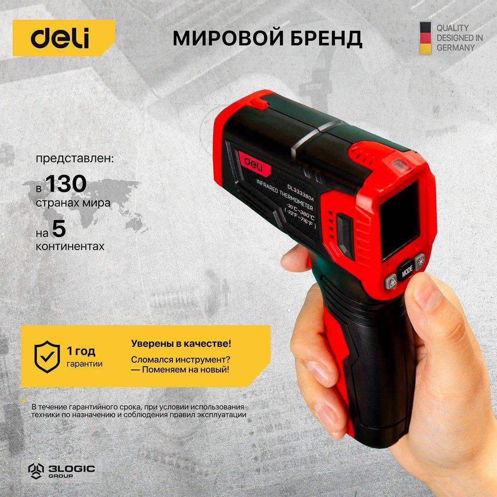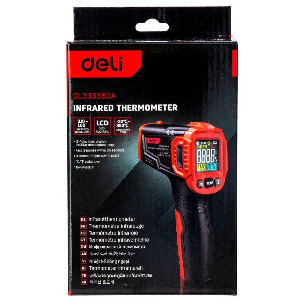 Измерительная техника DELI Инфракрасный пирометр с цветным дисплеем DL333380A -30…380°C
