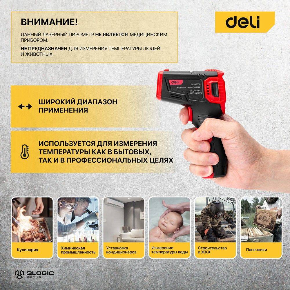 Измерительная техника DELI Инфракрасный пирометр с цветным дисплеем DL333550 -40…600°C
