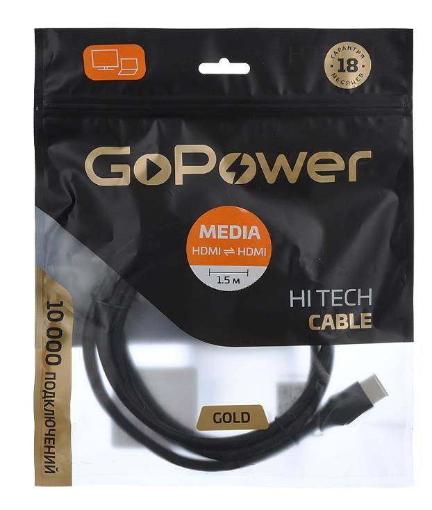 Кабель питания GoPower Кабель HDMI 1.5M 00-00027305 BLACK GOPOWER