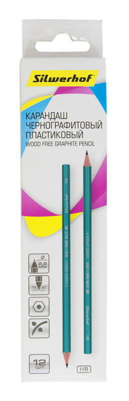 SILWERHOF Карандаш чернографит. Favorit 120638-03 HB шестигран. пластик грифель 2.2мм корпус зеленый ударопроч.гриф. коробка с европодвесом (120638-03)